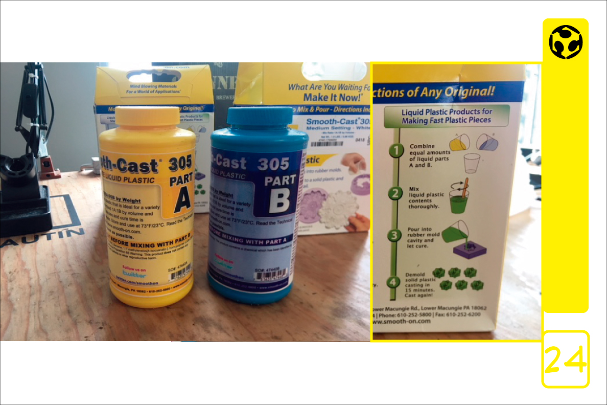24. We take the liquid plastic mixture in equal amounts, part A and part B..