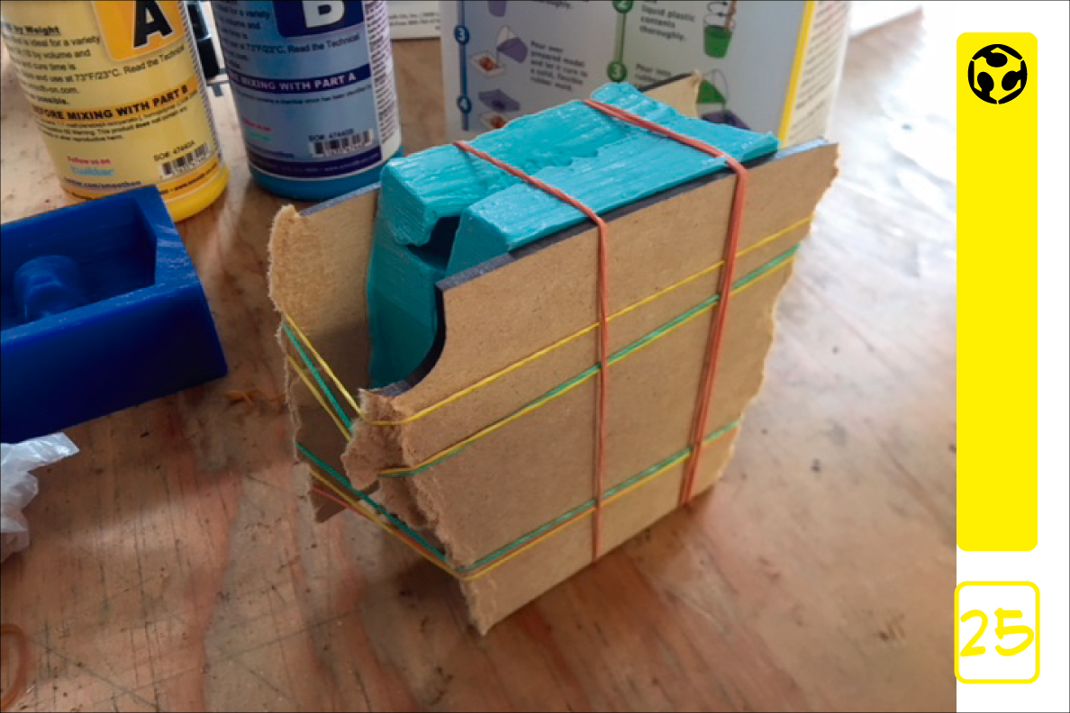 25. we join the silicone molds to pour the liquid plastic mixture.
