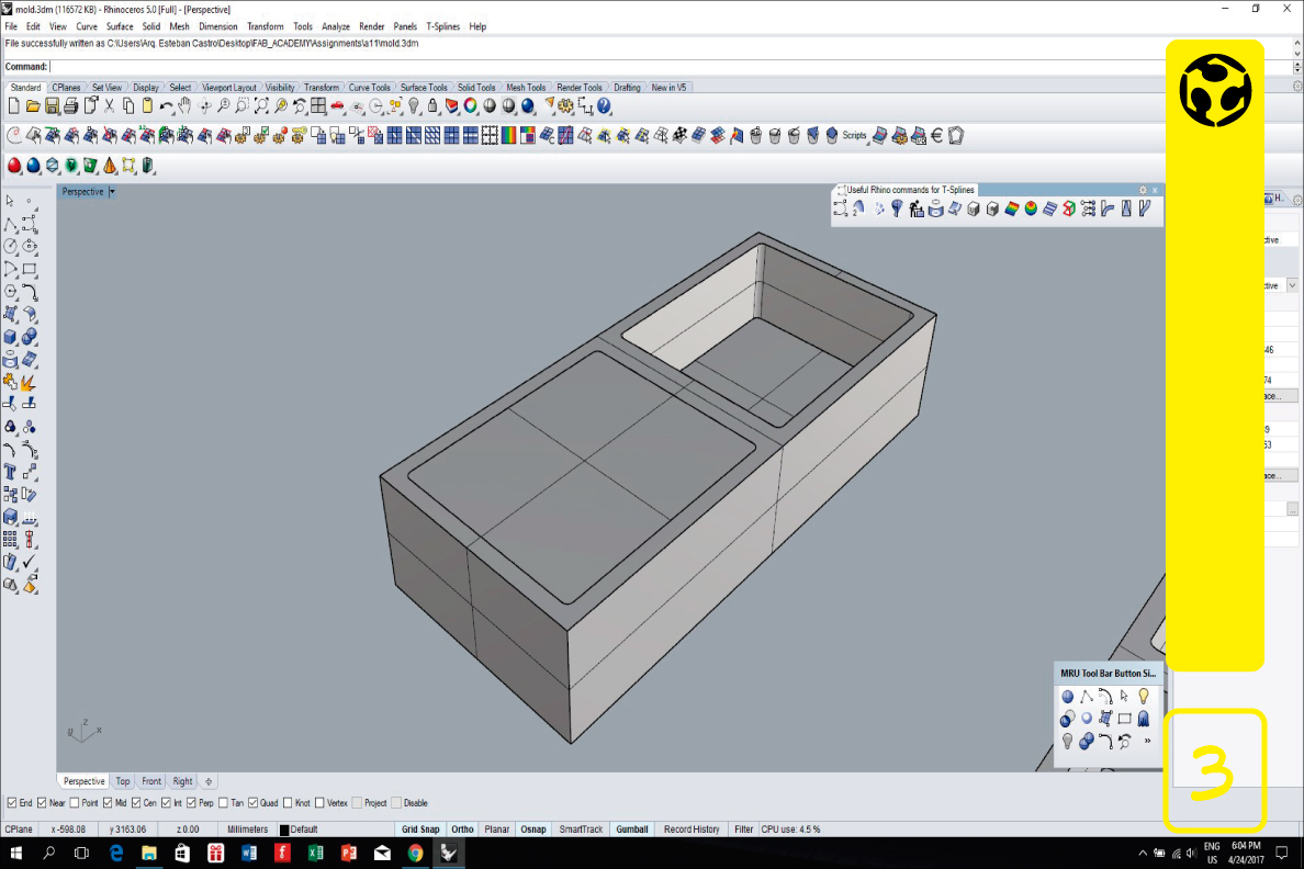 For this assignment we had to design a mold and manufacture it, using different materials, both for the main block and the covers for the realization of the plastic model.