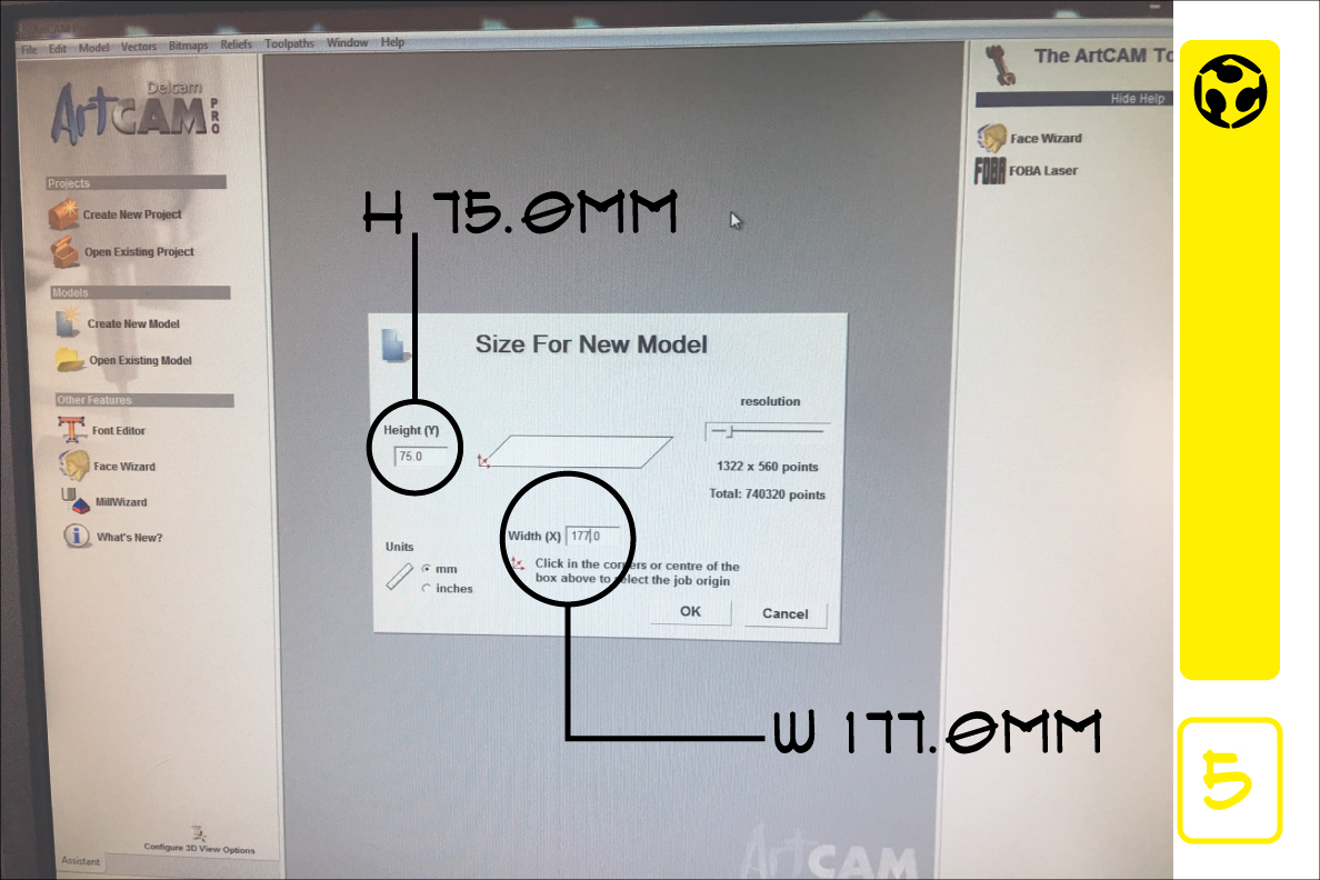 5. With the model ready, we use ArtCam to realize the size configuration and the drill bits to be used in the process.