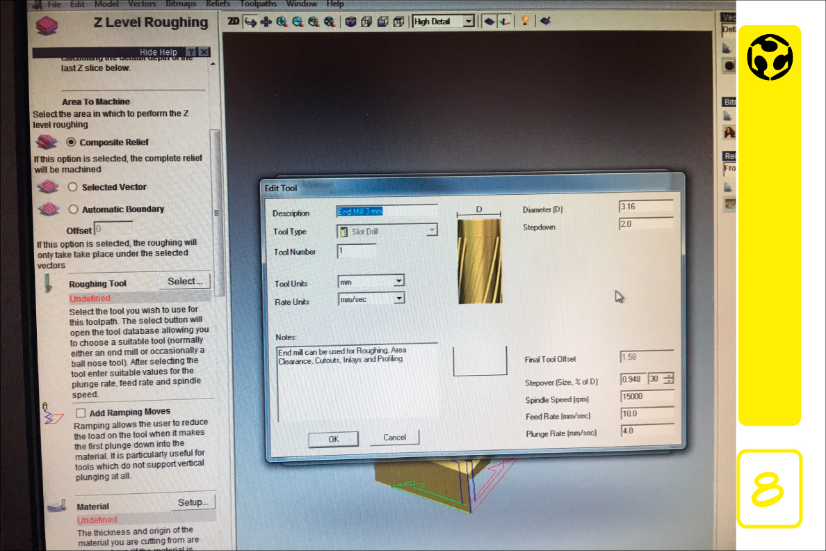 11. With the model ready, we use ArtCam to realize the size configuration and the drill bits to be used in the process.