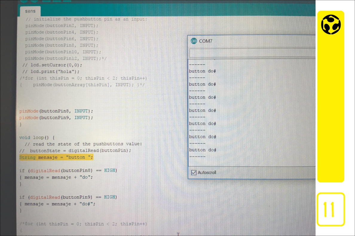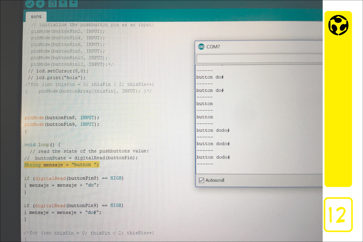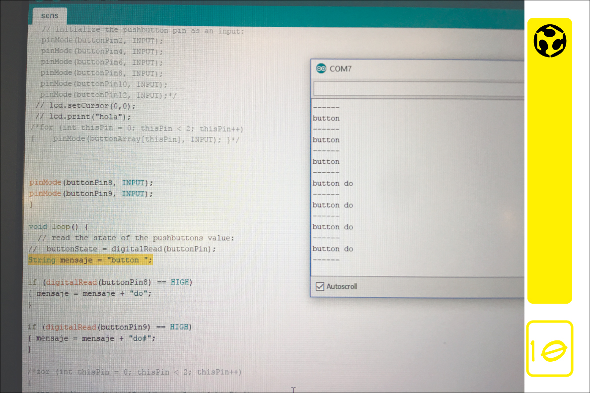 10. We now configure the buttons to give us a musical note, in this case it is the DO note.