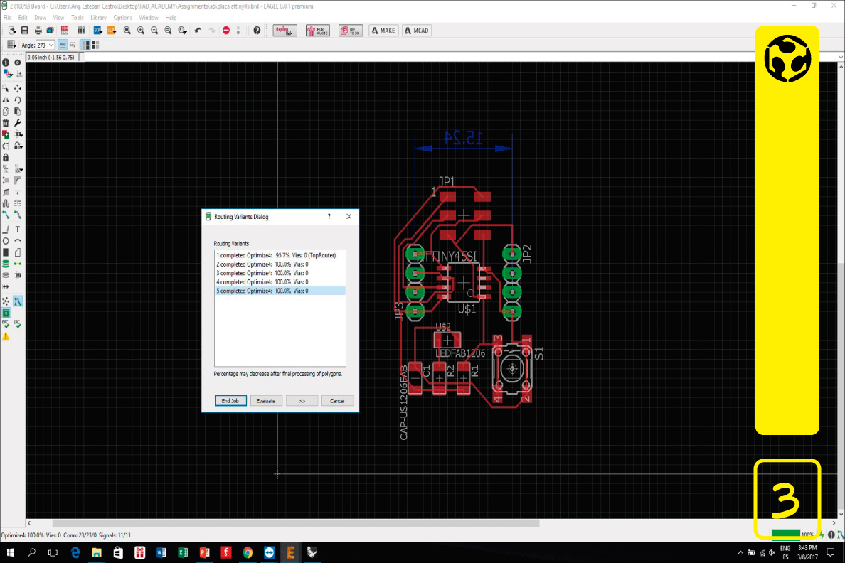 3. We run the autorouting so that the electronic phats are realized.