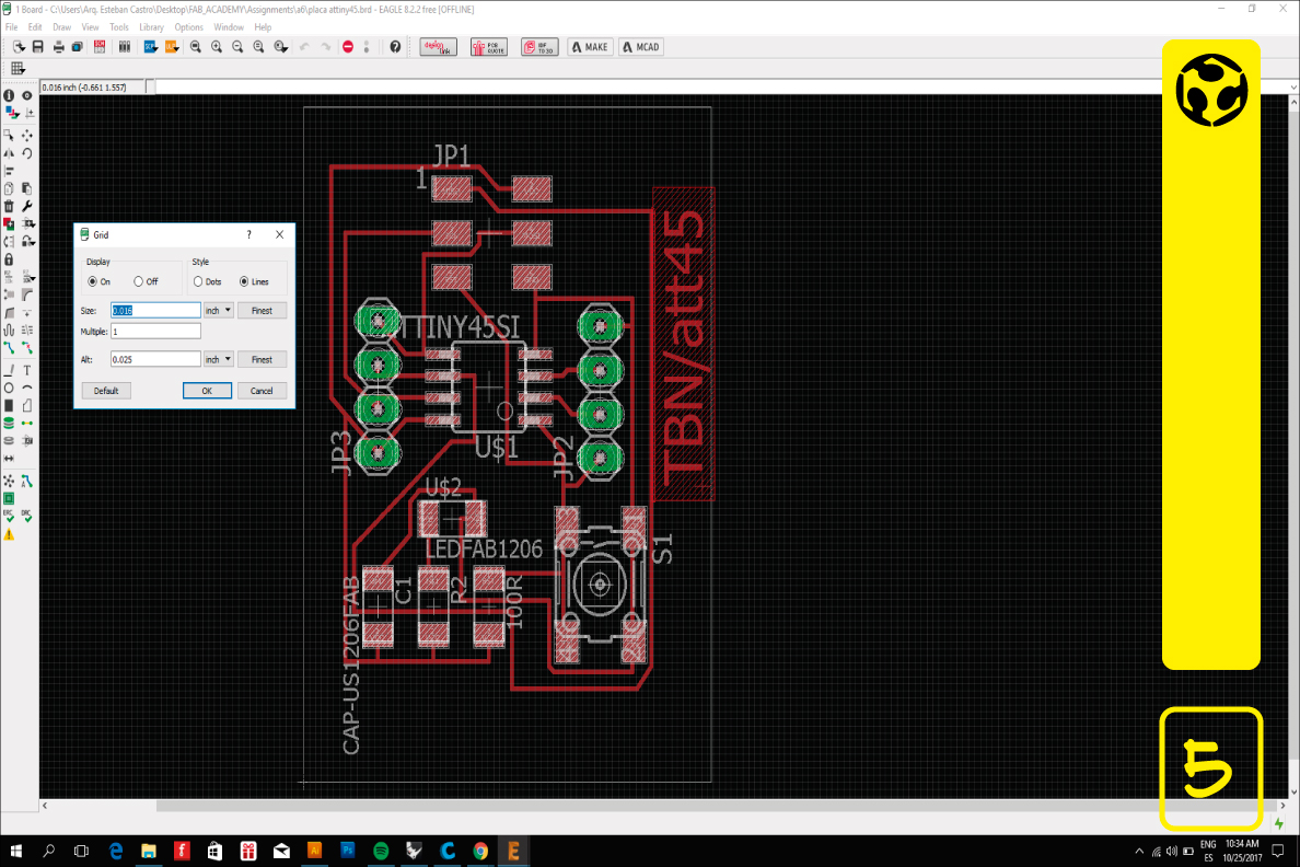 5. To ensure that the tracks fit the milling cut size, I changed the size of the grid to 1/64 inch.