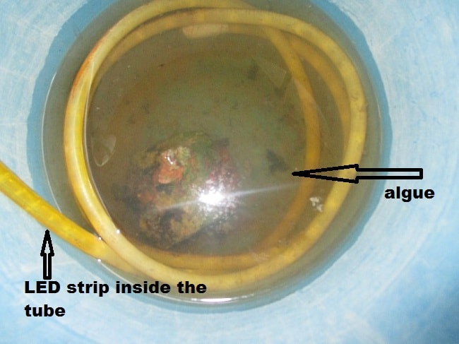 Before this I took trial on grey water by using artificial lightning. I was taking 6 days trial on grey water with LED light. There is non effect on Odour of the water. But algue biomass decreases upto half amount.The next time I was taking 24 hour test on grey water. The results are varies like , biomass increases 2% the sample of 30 gm. Actually I am working the packaging and protecting the electonic devices of project. I was using acrilic box for protecting this devices.