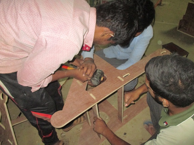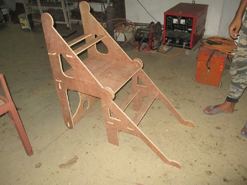 When I unfold that chair it will convert into the stairs and that it the beauty of design. I was making clamping arrangement during cutting the ply wood. The material i.e. plywood had some amount of bend. So, for the reason I was using C- camp for the fixing of the plywood.