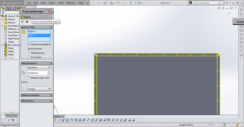 • I was giving fillet radius for my seat part. Because of outer radius of milling tool. Where I design only square edges for the part it takes curv at the corner side due to milling tool and kerf too.