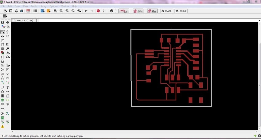 I did manual routing. I fix the size of board by using grid tab. Then I was emporting file as image formate. I did all steps which was concluding inside the electronic production assignment.