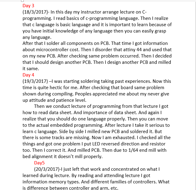 The embedded programming is vast subject. Learning of codes and there existences are really interesting task. I did lots of efforts for this assignment. And now I am walking with little bit programming!