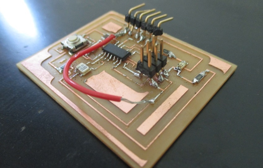 After soldering all components my hello board was ready to use.