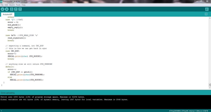 I was trying programming with my Fab ISP . Actually my ubantu system doesn't work properly so I was use my friends computer for this program. My ubantu system has memory problem actually I have seperated windows and linux system in my computer.