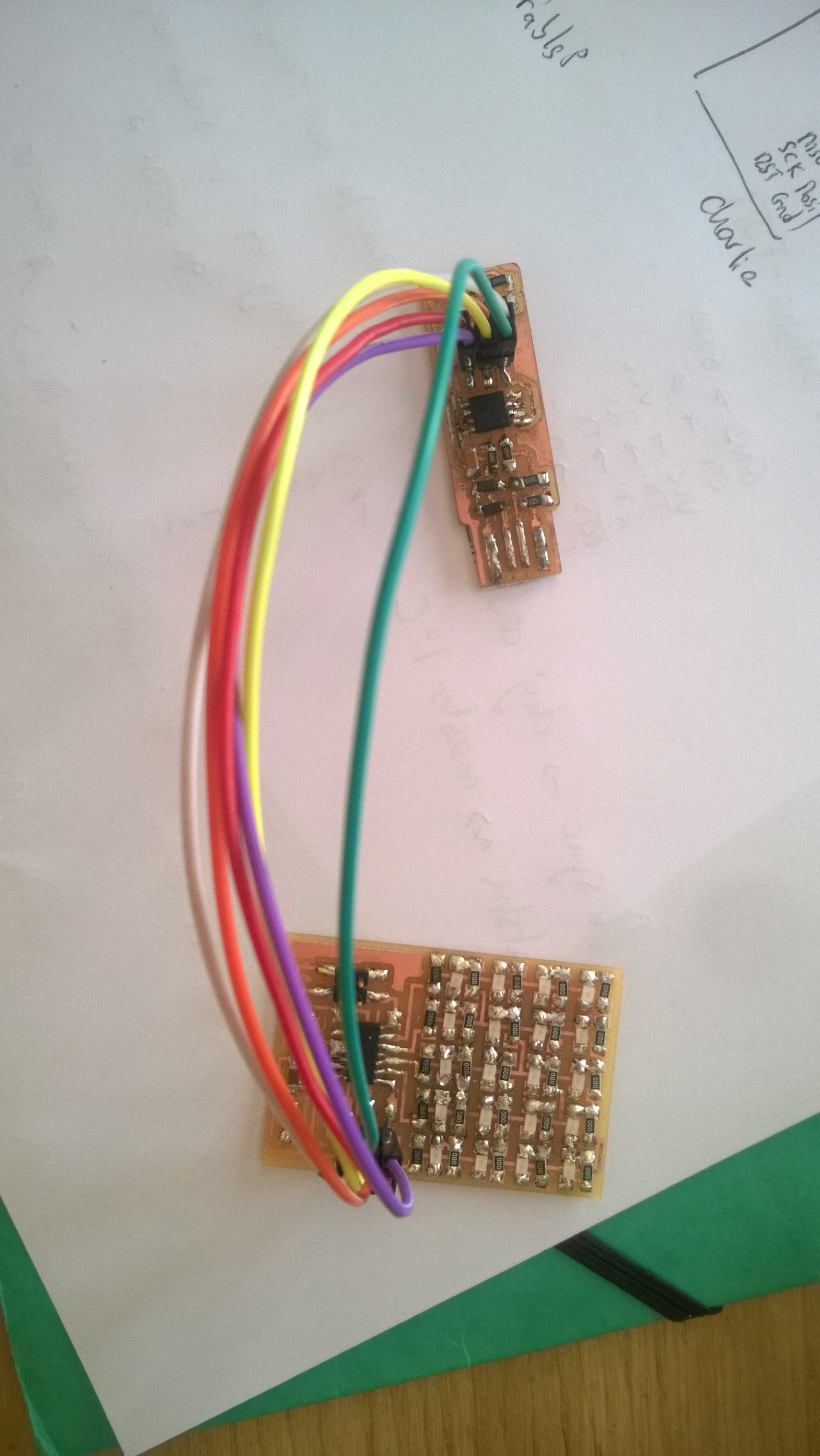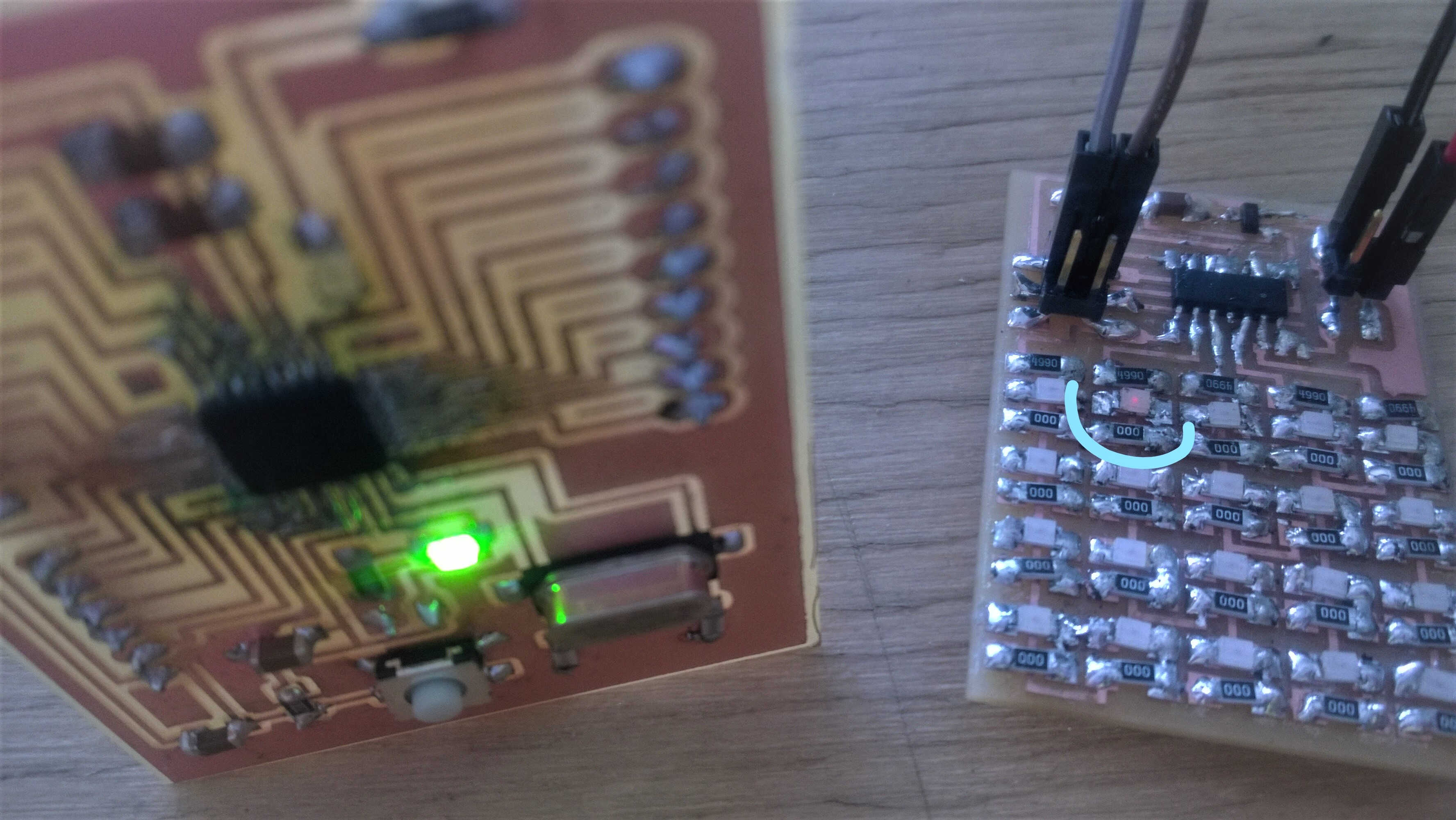 I then decided to interface my led+button board from Week 8 (schematics + board).