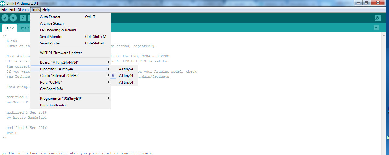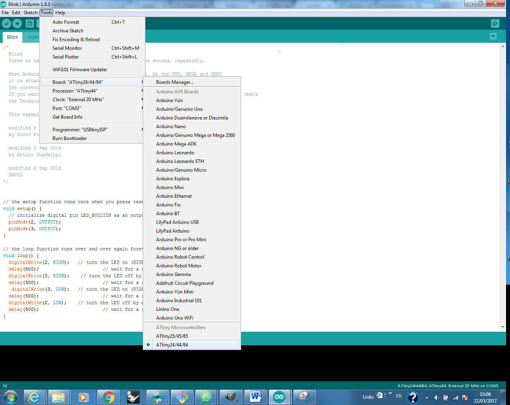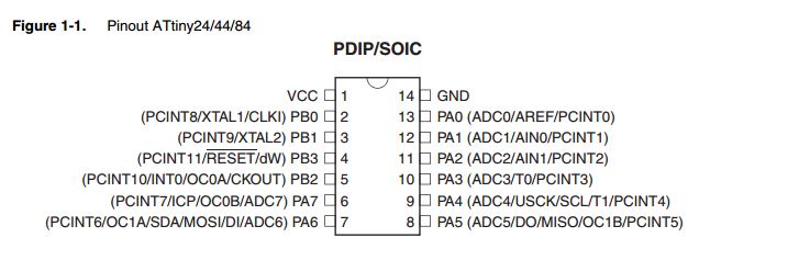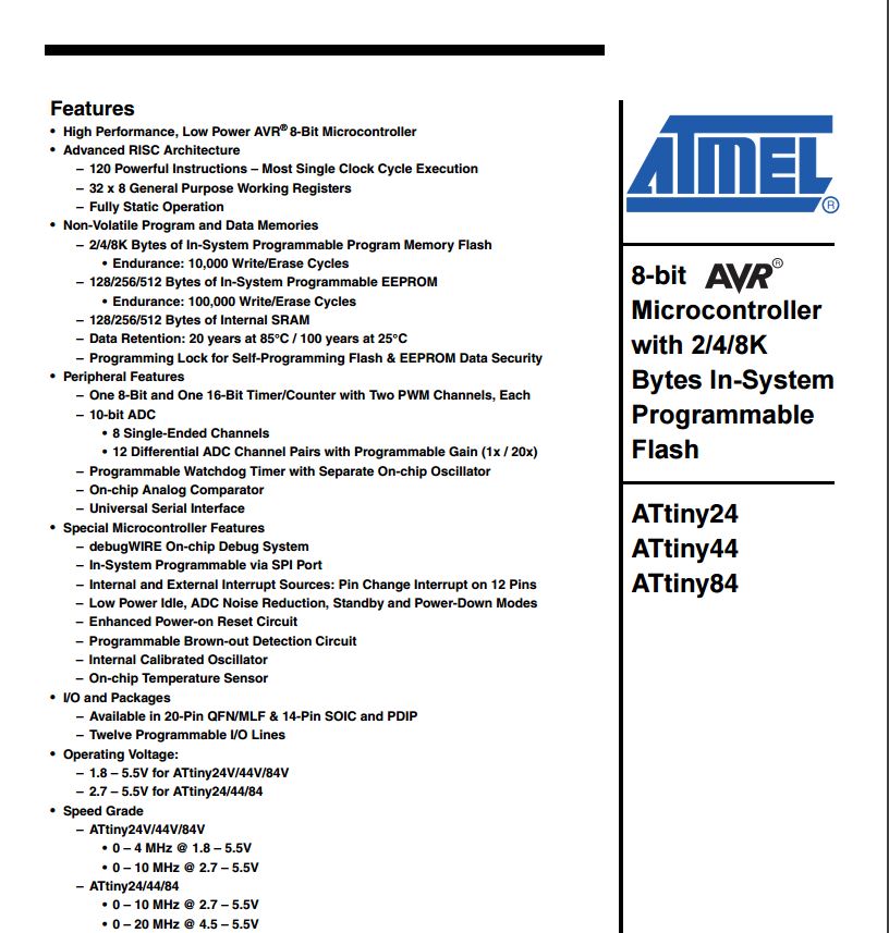 I started by analyzing the data sheet of the microcontroller ATtiny44 by comparing with ATtiny45 and 55 as they belong to the same family