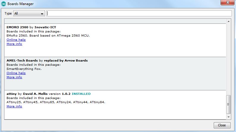 I installed the USB driver for the TinyISP. Inside Arduino IDE,