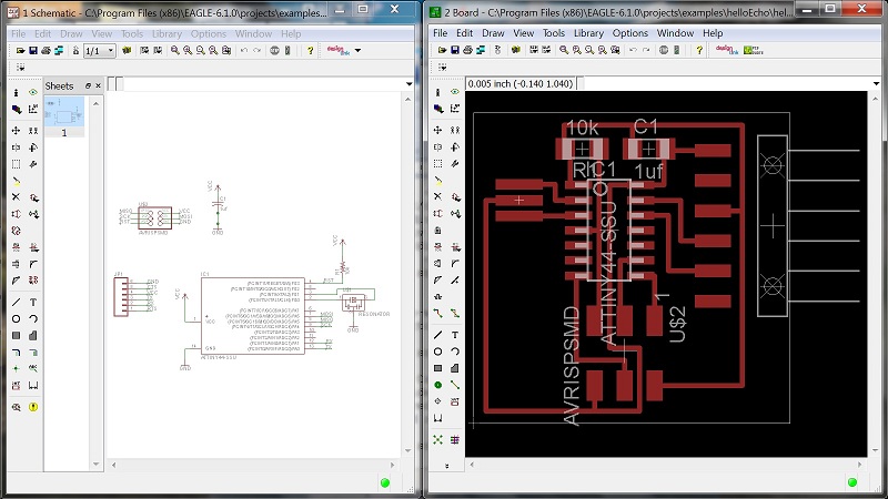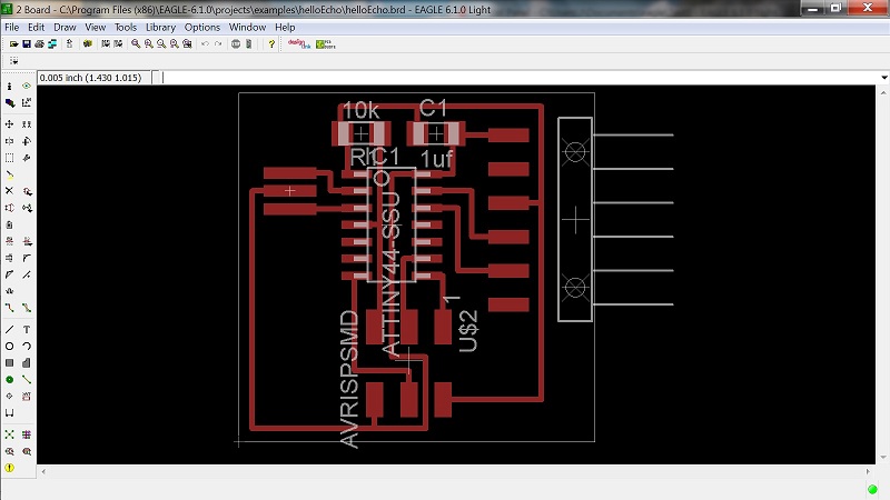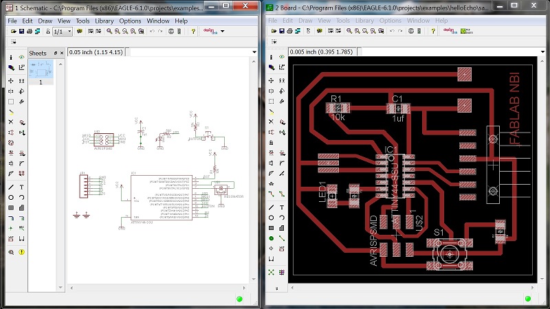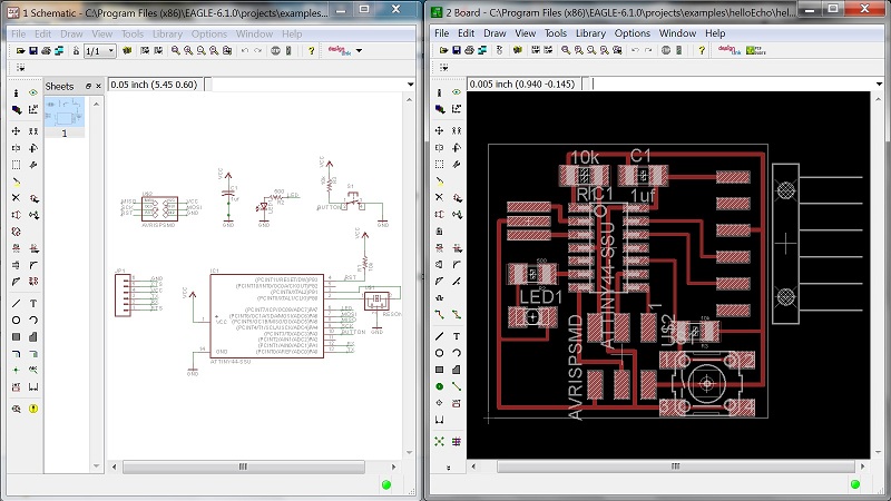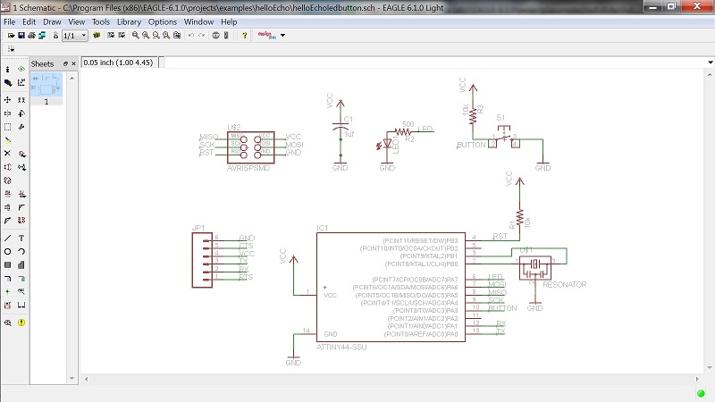 For the this project, we are to redraw the echo hello-world board above, using the CadSoft Eagle software, and add a button and LED, and make the new board.