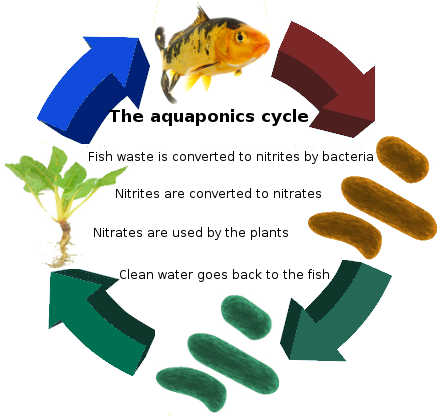 Aquaponics is a form of sustainable agriculture that blends aquaculture with hydroponics, and is beneficial to both the plants and the fish. The waste from the fish is used by the plants as fertilizer, thus cleaning the water for the fish. Clean water from the plants is returned to the fish and the cycle begins again.