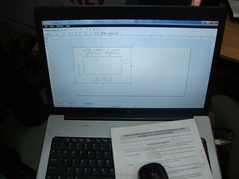 The Epilog drivers are not compatible with the SketchUp file format. When you send a SketchUp job to the Epilog Mini, it immediately says 'done'. So I used a plug-in exporter for SketchUp that I found on the net, that exports to dxf, and exported a top view of the picture frame. I then opened the .dxf file on CorelDraw X5, and sent the job to the Epilog Mini.