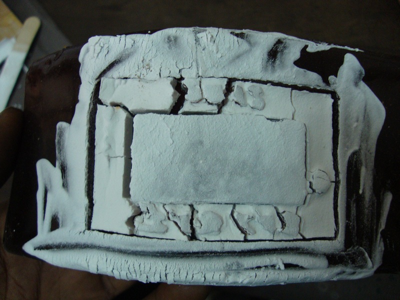 I cleaned out the mold; made a fresh dry stone mix; and poured the mix into the mold carefully. I could'nt find a scale, so I approximated the ratios, which are: 100g of powder to 65g of water.