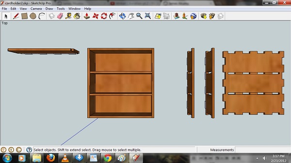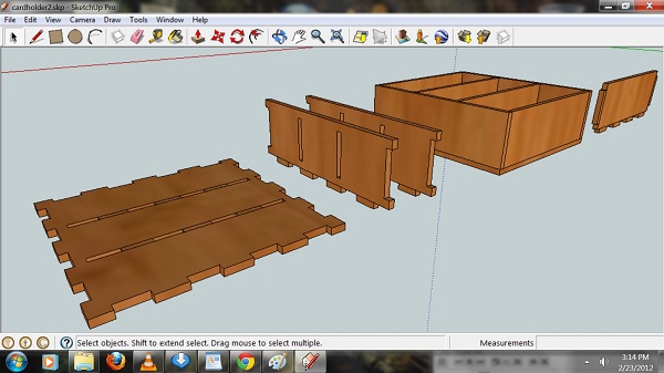 For my press fit project, I decided to make something simple to familiarize myself with the Epilog lazer cutter above. I first wanted to create a bird house, but that turned out to be more complecated than I thought. I therefore searched for a simpler design, and came up with a business card holder.