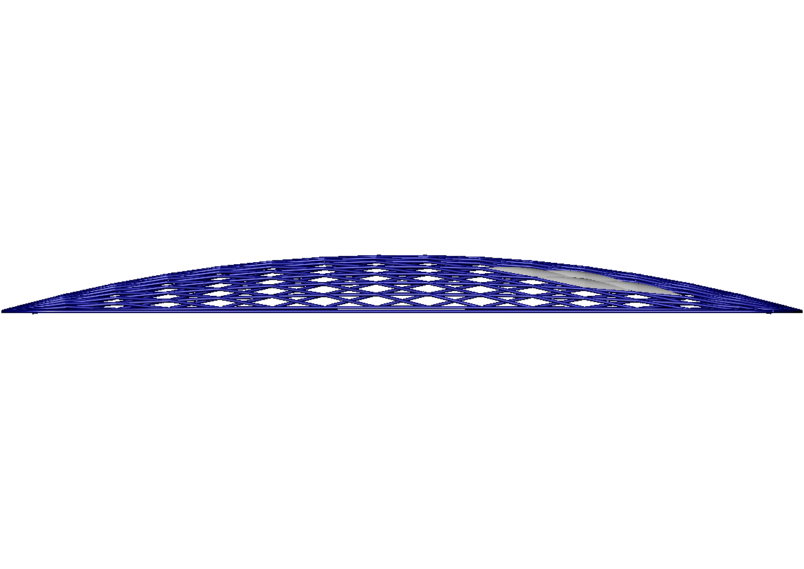 top view of the grid shell showing principal U-V directions