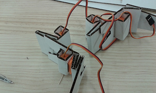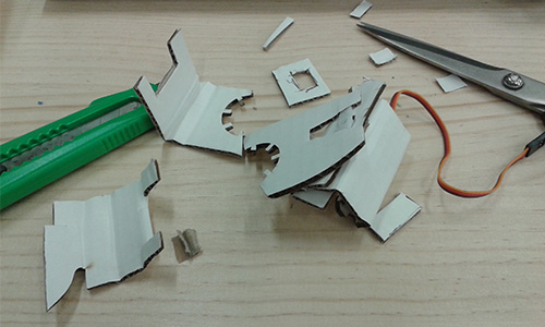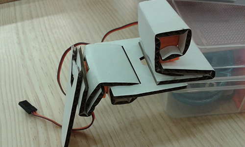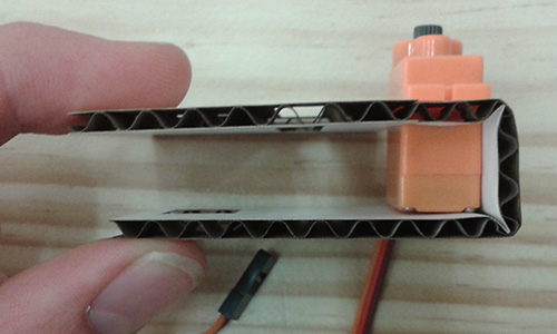 The spacing of the corrugations in the card I was working with meant that it would fold nicely around the servo motor and also had quite a bit of spring in it.
