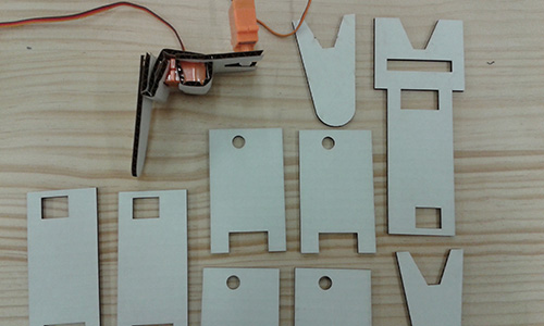 The main objective for this week was to create a pressfit construction kit out of cardboard. In other words to design a series of cardboard components that could be assembled in multiple ways. I decided to make servo brackets that could be clipped into each other to build little walking robots.