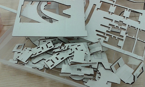 Armed with these discoveries I set out in a different direction. The assignment was to build our system out of card board, so why not take advantage of the properties of corrugated cardboard that make it unique. I traded out the laser cutter for some scissors and a craft knife and started playing around with the way the cardboard behaves when it’s folded or its corrugations are ruptured.