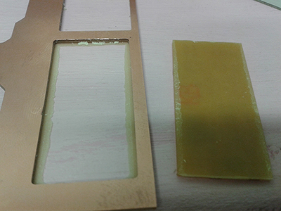 The final step in board production is a bit of clean up. Removing any filings or dust with the nylon brush. Scrape off any bur with a flat ruler then washing the board with a bit of soapy water to remove any grease from your finger prints that could mark the board.