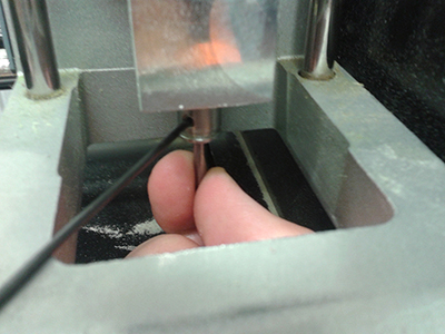 When changing the bit its important to hold the bit with one hand while loosening the grub screw, otherwise the bit will fall out and hit the bed which could cause it to break.