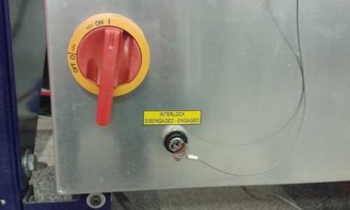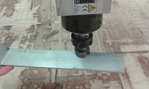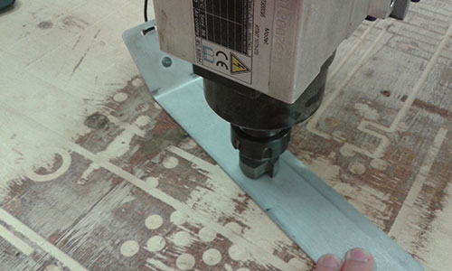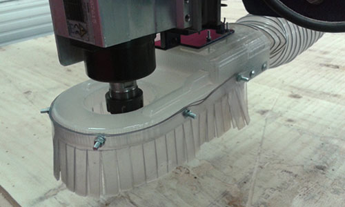 Turn on the extraction, put on ear and eye protection, enable the spindle interlock. Now we’re ready to cut.