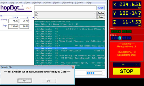 Our shopbot is setup with proxmity switches which home the X and Y axis and a Z-zero plate for setting the material height.