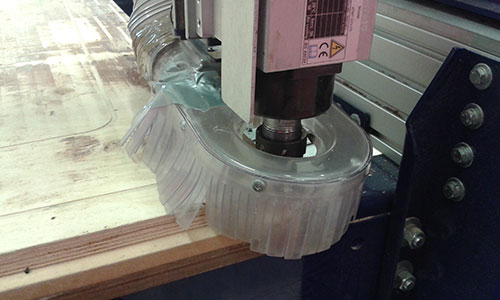The new foot was milled using blue foam, which machines very easily but also makes a massive mess. It also cant be collected using our main dust extraction system as it would contaminate our wormfarm so instead we use a dedicated vacume for non compostable materials.