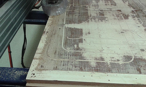 The bottem sheet of my table is cut out using a 6mm flat nosed down cutter.