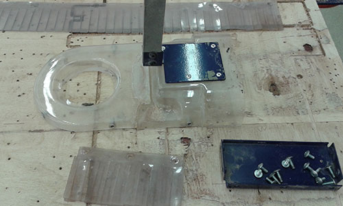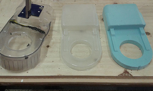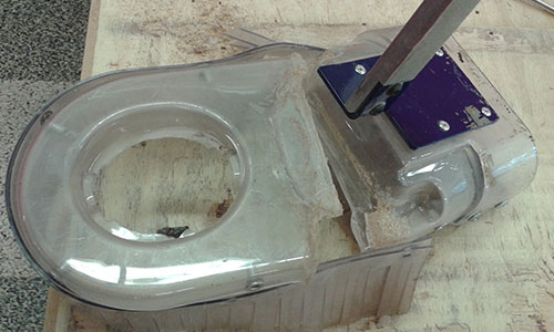 After two years of dedication and tireless hard work the dust collector hood on our shopbot has died. Cracking along the fold between the spindle and mount arm. This provided a great oppertunity for me to have a play with the vacum former, something I’d been hoping to do for a while.