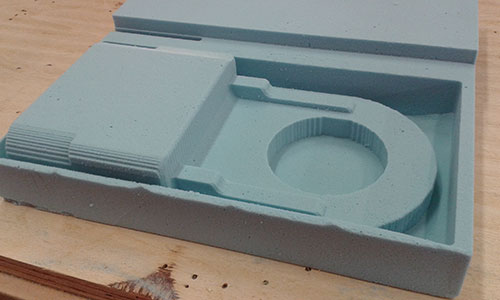 This foam mold was milled using a two fluet 6mm square end down cutter. The foam is really light and easy to machine so a roughing pass can be really deep, if required at all.