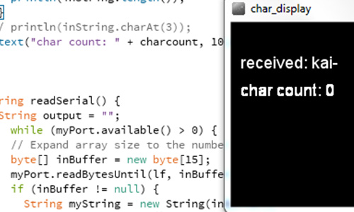 On the PC side is a processing sketch that reads the serial line and converts it into characters. This will likely change as I expand out the character set to make database lookup easier.