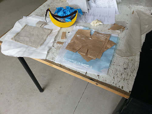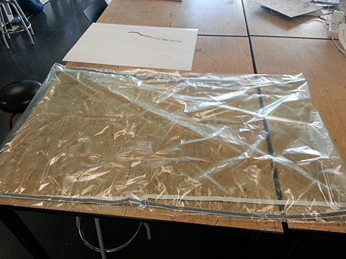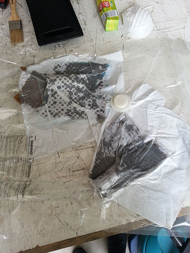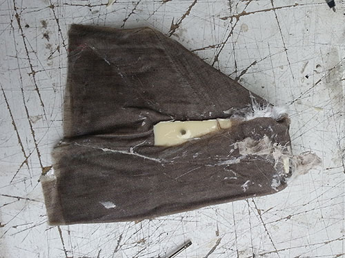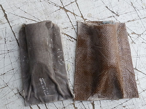 As non-stick surface I used vaseline and plastic, one for each piece. For the top layer I used perforated plastic for the sackcloth and cloth with linen in order to test both finishes: smooth and rough.