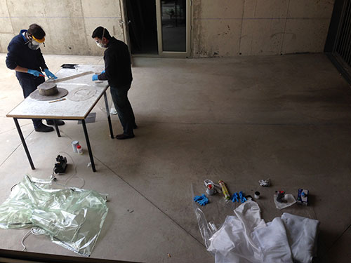 Before mixing the components of the matrix I cut the clothes to match the shape of the piece casted. I did that procedure using a pair of scissors and on a trial and error basis.