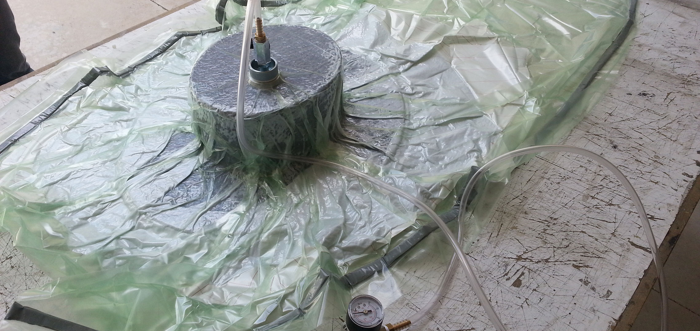 Once layered the composite, before it started curing, I introduced both samples into a cloth vacuum bag.