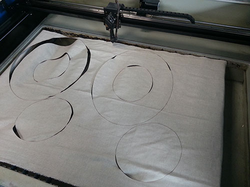 Trying not to repeat the errors I made with the test pieces, I laser-cut the linen, so each piece had the desired shape.