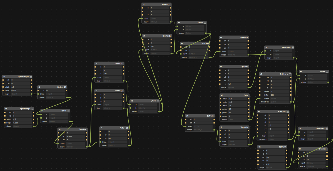As seen above, the design is nowhere near perfect, the hole of the nut is not perfectly rounded and the hexagonal shapes have been done by combining triangles. Probably a better approach would have been scripting the desired shape directly.