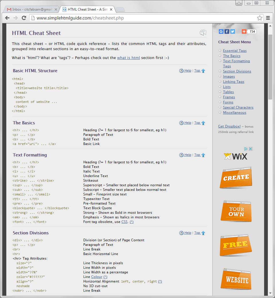 Figure 1.2: HTML cheat sheet helping in developing a website