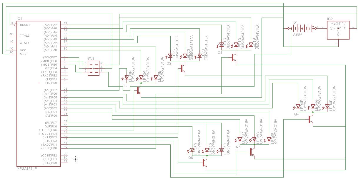 has six RGB LEDs connected to it. I chose to have six after testing a