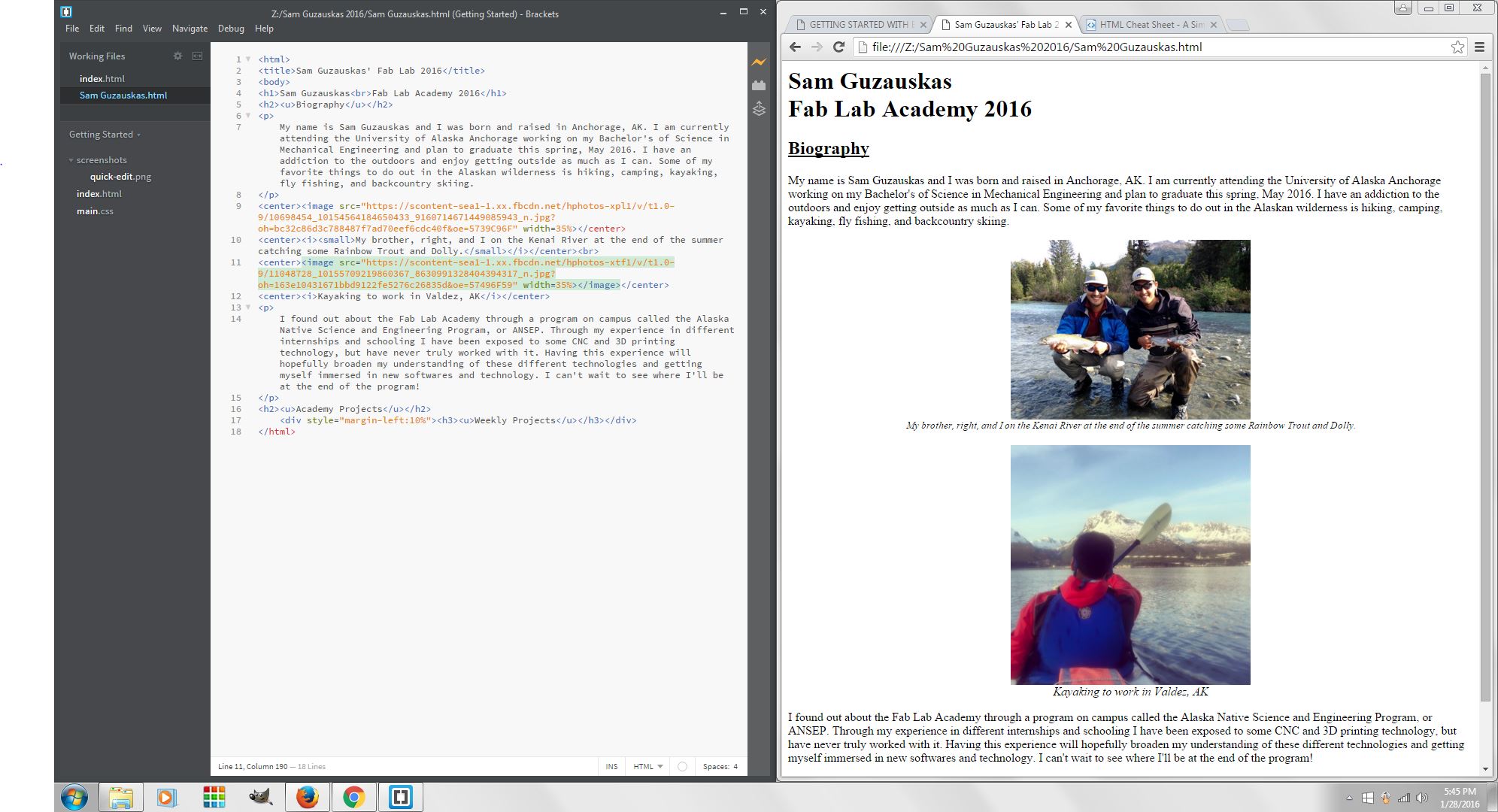 Figure 1.1 shows the Brackets program and live preview of my site being
