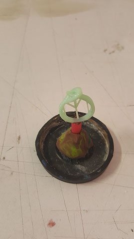1. Fix the part to be molded with a little play dough on the wooden base. This in order to prevent the workpiece from moving when using the silicone.