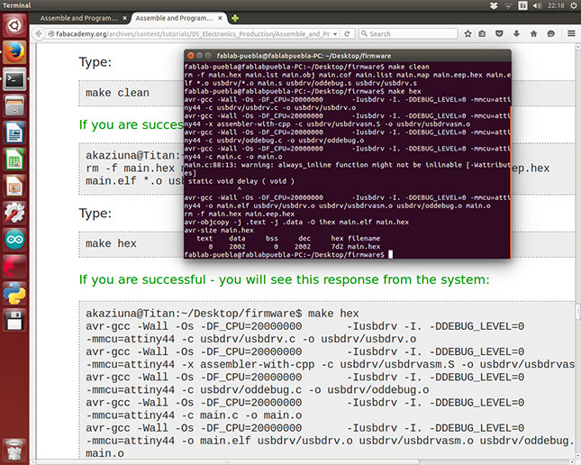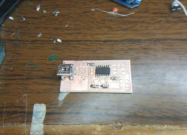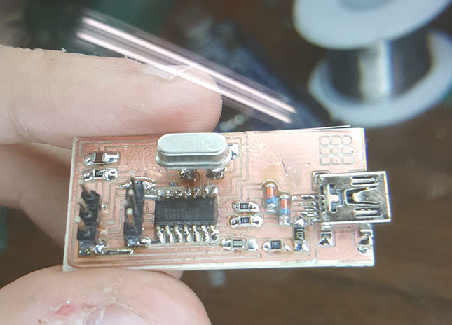 When i was almost finished soldering I remembered i needed to program my attiny as a programmer. So using AVRDUDE and an arduino I started programming