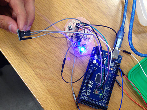 After testing my connection on the protoboard I made the circuit using a copper board and the Modela machine and EAGLE software.