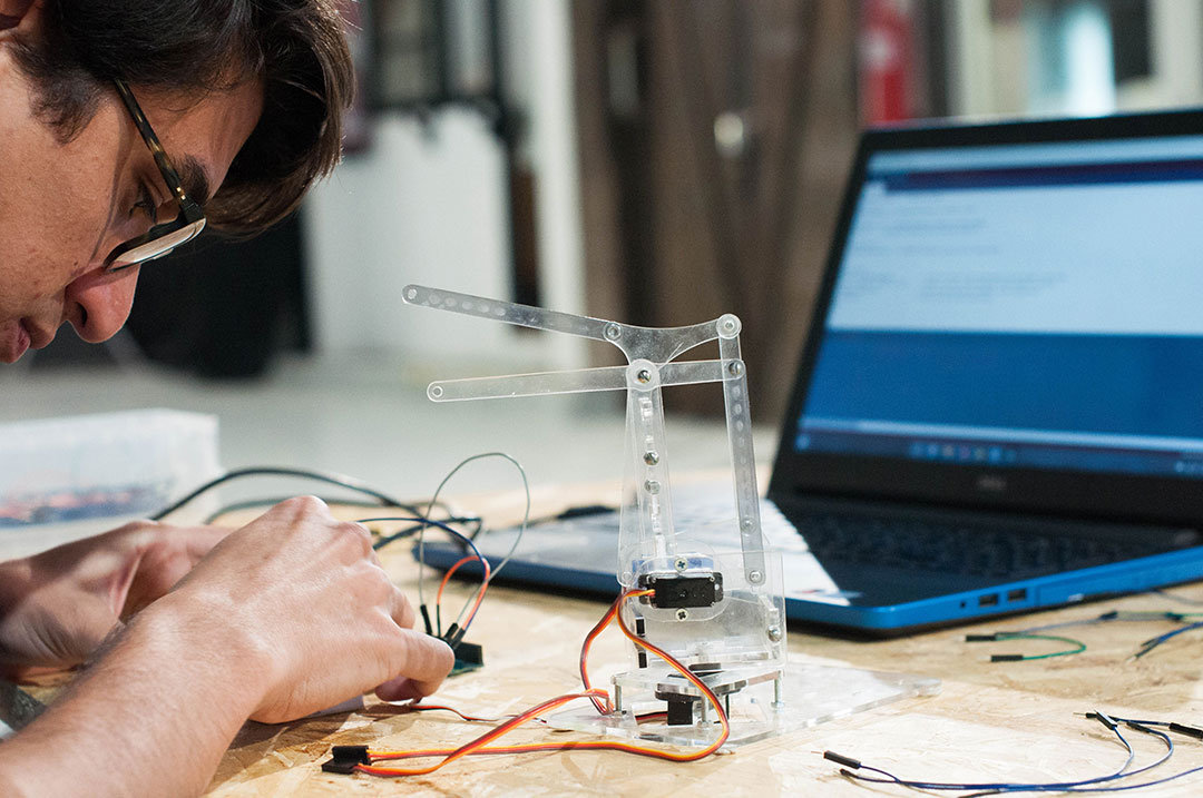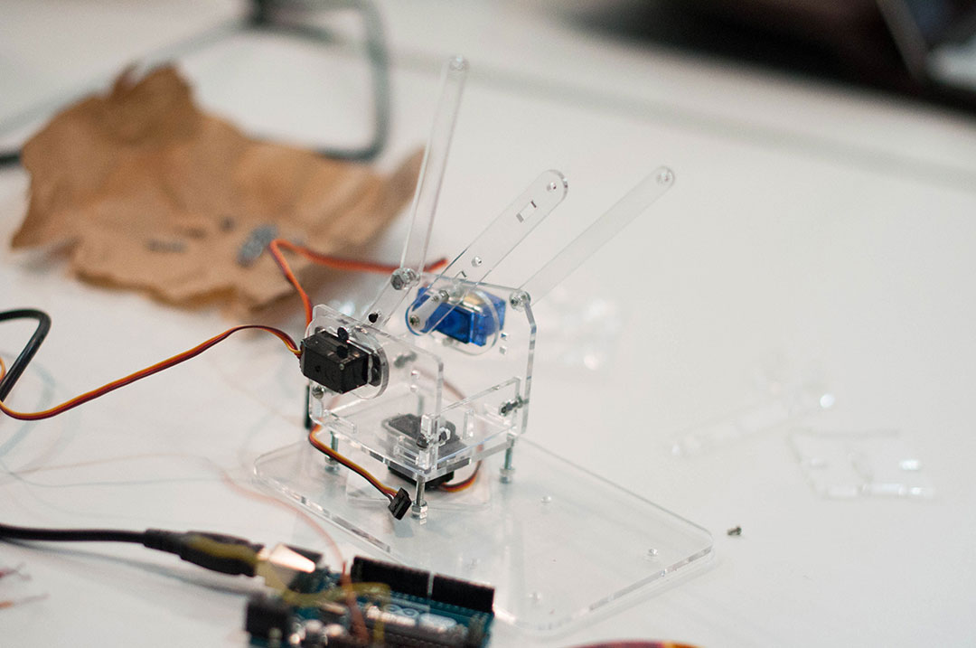 We looked at a lot of different robot arms and decided to build one that is similar to the MeArm tiny 4-axis robot.