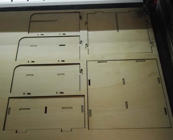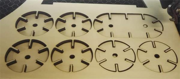 The first time, I made a mistake, the laser didn't focus accurately, the model was still conneted to the polywood after cutting.