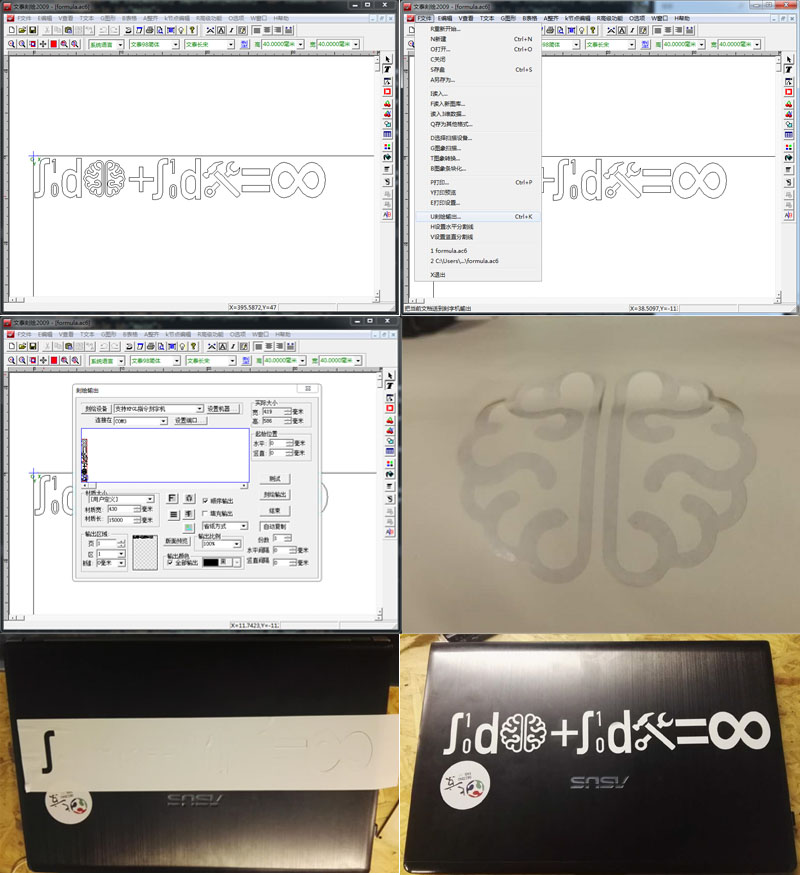 The following is the Laser Cutter of our FABLab Beijing. This machine can only recive the DXF file format. It can work on-line or off-line.